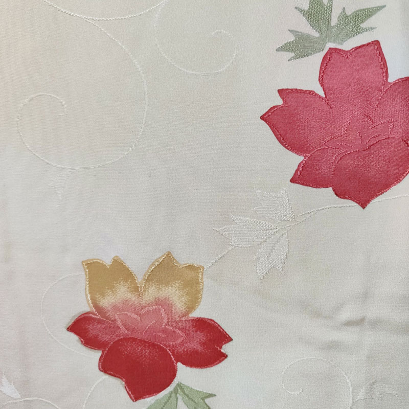 Se dibuja una clemátide en un color claro sobre una tela de color crema claro.