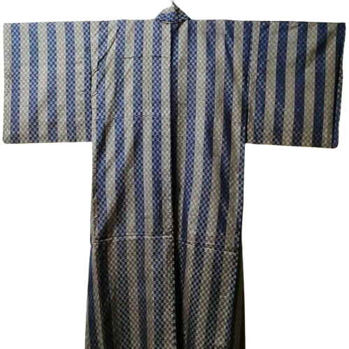 Este es TSUMUGI con rayas azul índigo y dorado tenue.